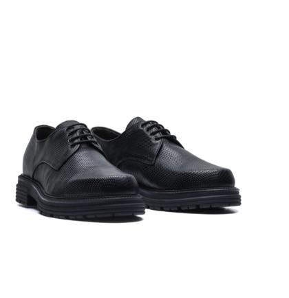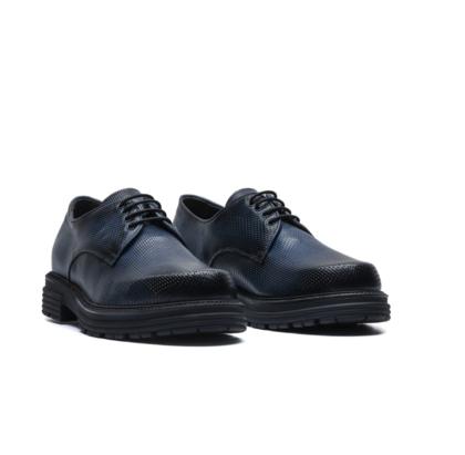 Derby en cuir de veau imprimé à la texture inspirée de l'accélération et teint à la main dans des nuances artisanales.