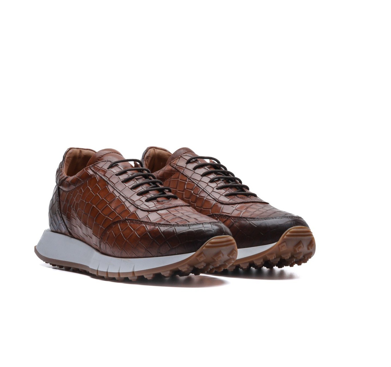 Fashionable sneaker for men in genuineleather crocodile printed made by our unique artisans.