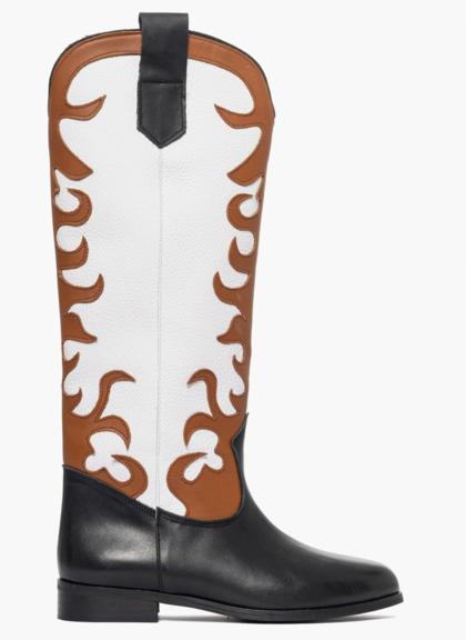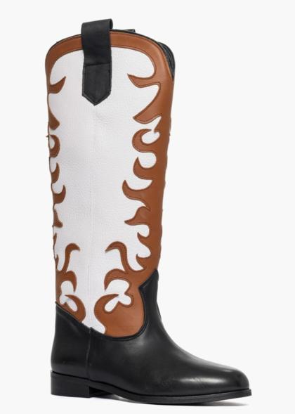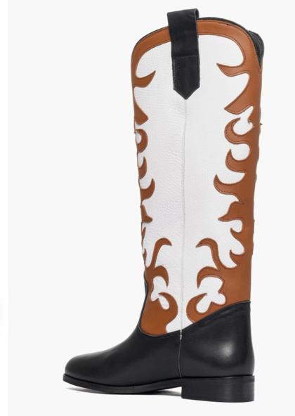 Black and white leather boots with a flame design along the front, height 3. Regular fit, leather lining and insole. Handcrafted, strictly Made in Italy.