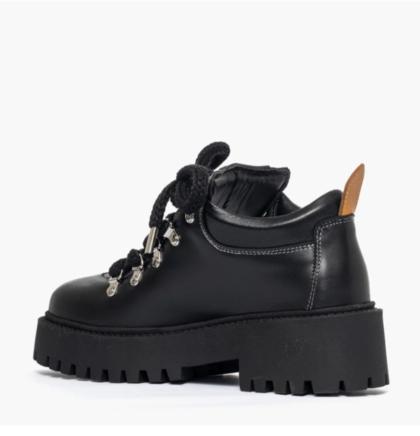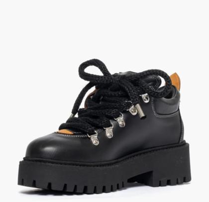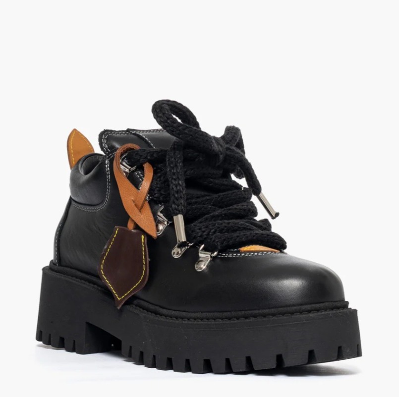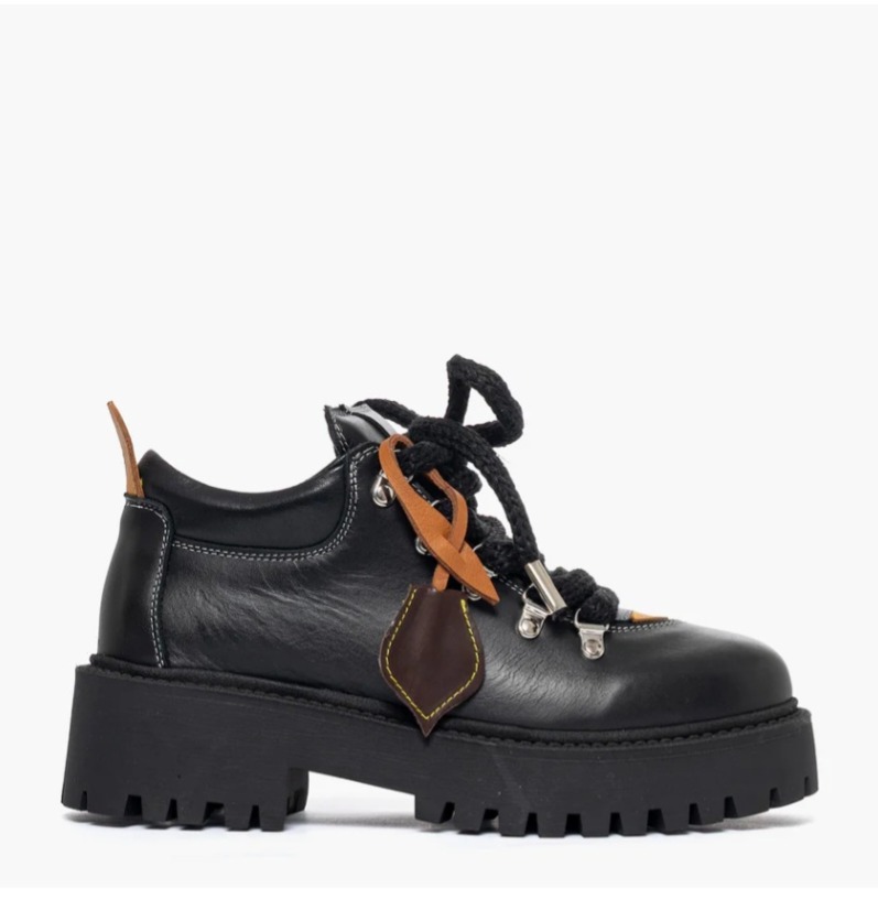 Black leather shoe with tan leather insert, leather interior, round black laces, silver accessories and a removable dark brown leather plate on the side, black sole height 5. Regular fit, handcrafted footwear, made in Italy.