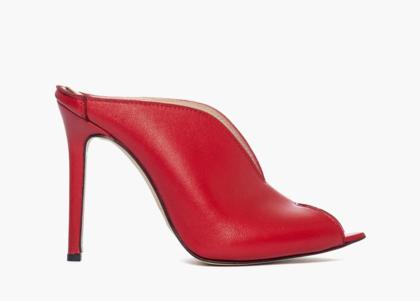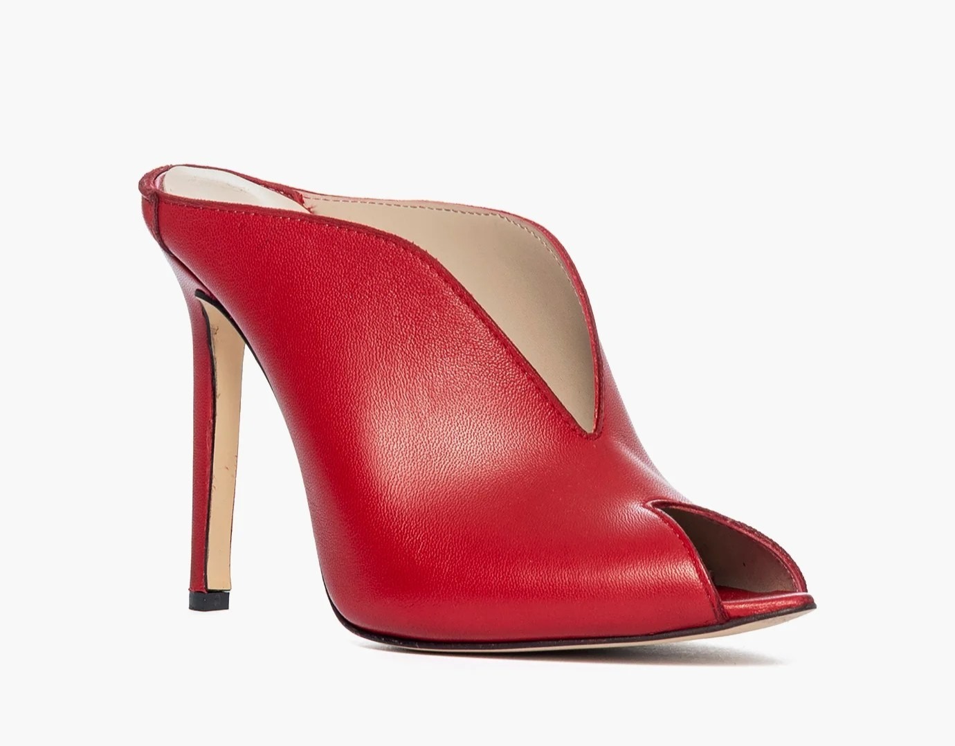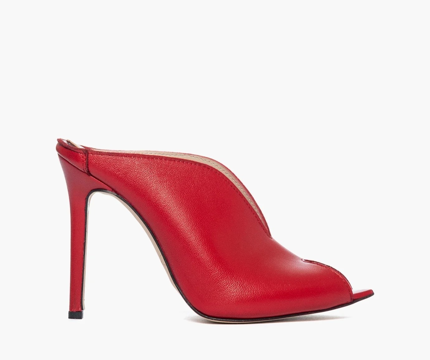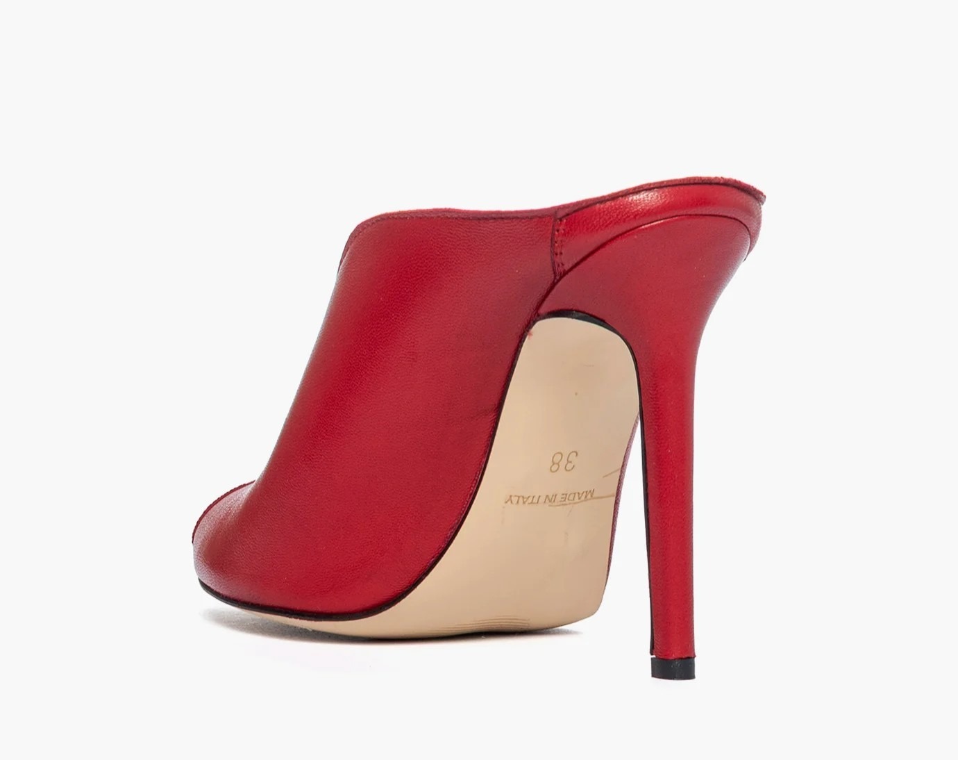 Red leather mules, leather lining, covered heel, height 11 cm, pointed toe, and pointed toe. Regular fit, handcrafted in Italy.