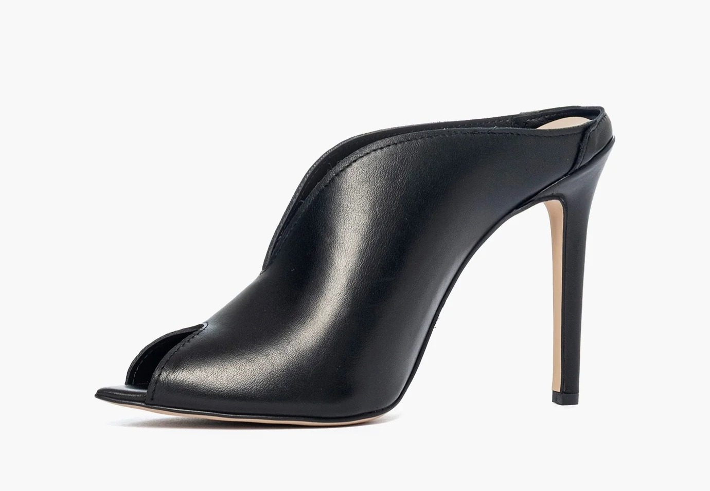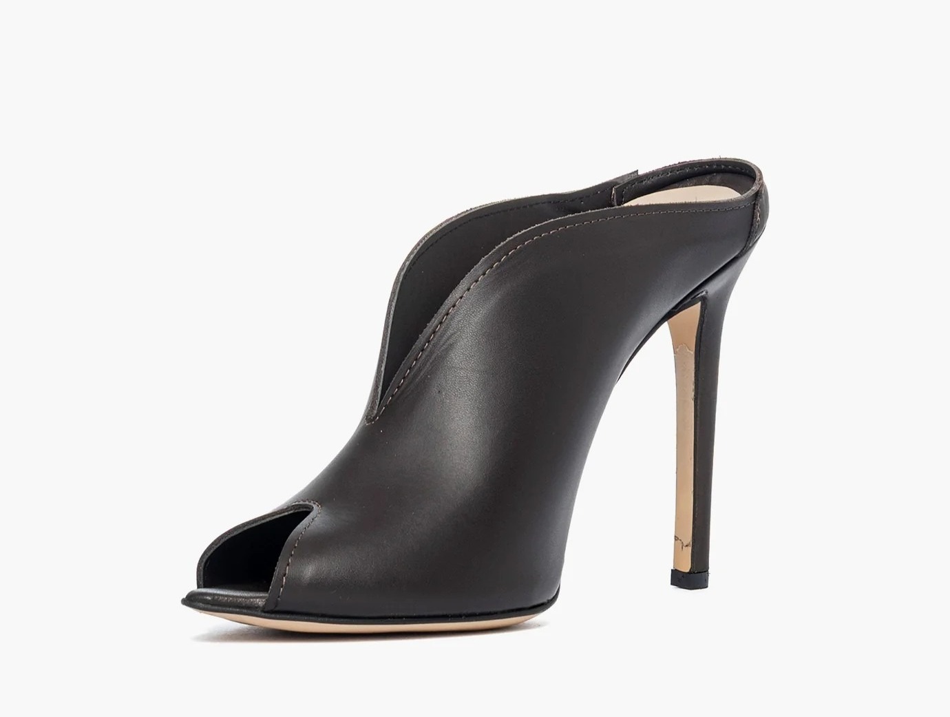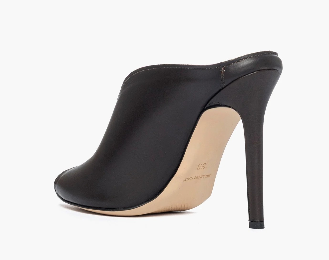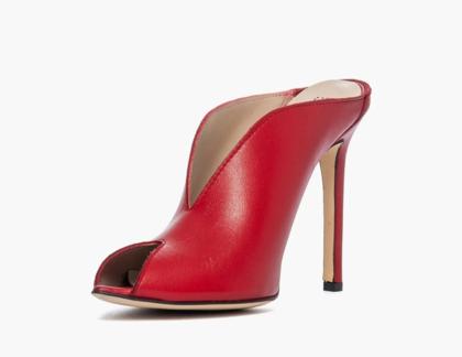 Red leather mules, leather lining, covered heel, height 11 cm, pointed toe, and pointed toe. Regular fit, handcrafted in Italy.